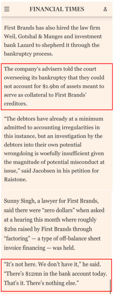 [1] First Brands is a painful but necessary warning for Wall Street, October 2025, The Economist